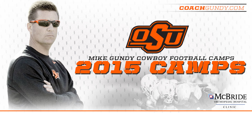 Thank you for visiting the official website of the Mike Gundy Cowboy Football Camps. Our football camps are complete for the 2015 summer. We appreciate everyone who attended our camps this season and a special "Thank You" to all the parents. If you need further assistance, please contact us directly at 405-744-9869.